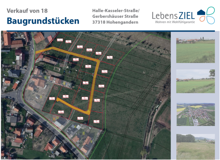 Baugrundstücke in harmonischer Lage in der Gemeinde Hohengandern. In idyllischer, naturnaher Landschaft können Sie hier Bauplätze in der Größe von 450 m² bis 1000 m² erwerben. Ebenso ist hier die Anbindung zu den Städten Göttigen und Heiligenstadt zu erwähnen.